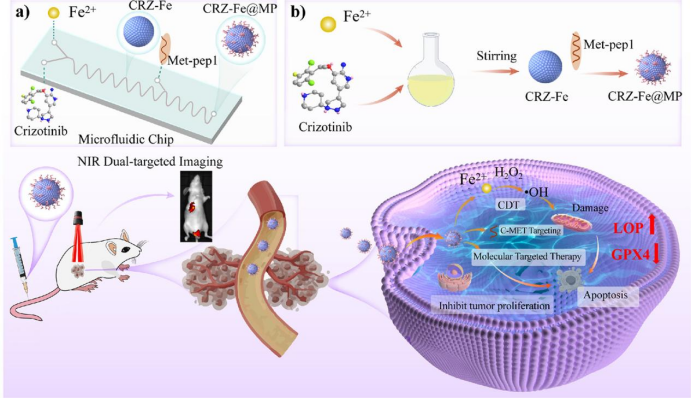 近日,我校药学院、药物分子设计与评价省重点实验室郑鹏武课题组潘青山、朱五福博士在化学领域国际期刊《Journal of Colloid and Interface Science》(中 国科学院一区TOP,IF=9.7)上发表题为“Microfluidic fabrication of peptide modified carrier-free self-assembled crizotinib-metal nanodrugs for NIR fluorescence imaging and dual-pathway therapy of non-small cell lung cancer”的最新研究成果。该文第一作者为我校药学院2022级硕士研究生郭秋燕,...