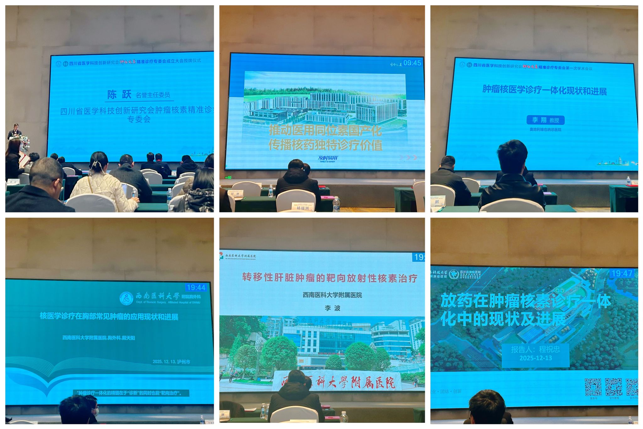 20251212日至13日,我校药物分子设计与评价江西省重点实验室张瑾征、徐崇辉、向东流三位教师参加由四川省医学科技创新研究会主办、西南医科大学附属医院协办的肿瘤核素精准诊疗学术会议